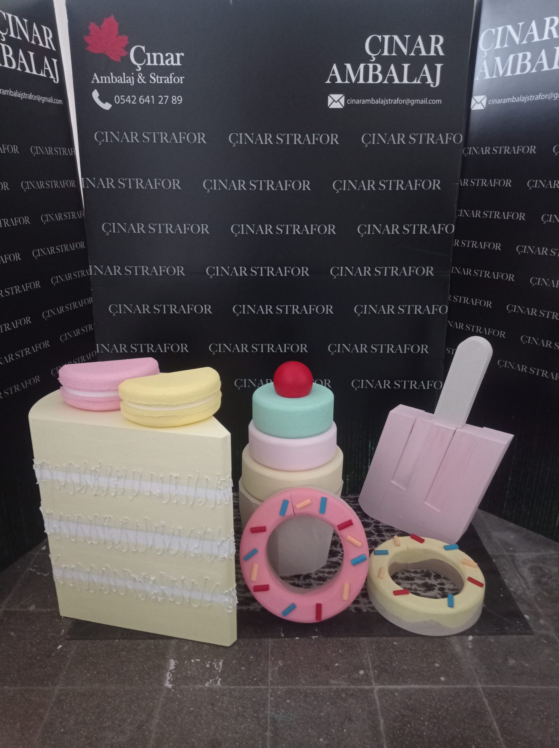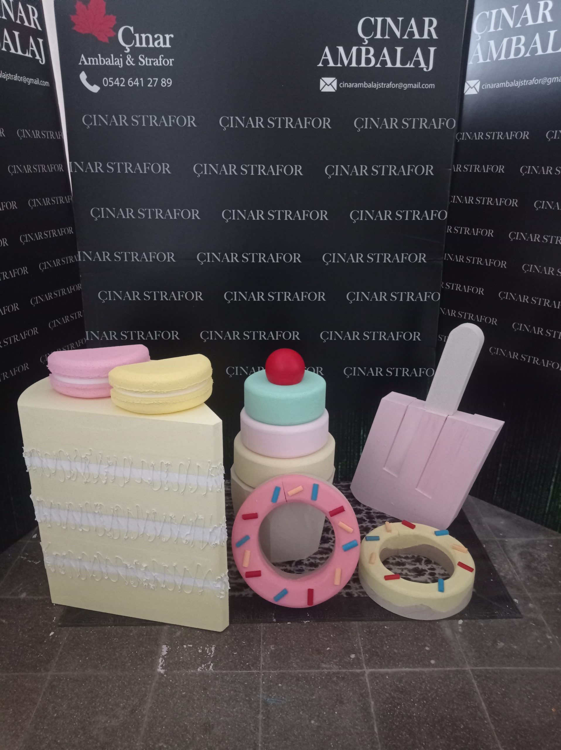 1 yaş doğum günü strafor dekor dondurma .makaron donut.cupcake gibi ürünler